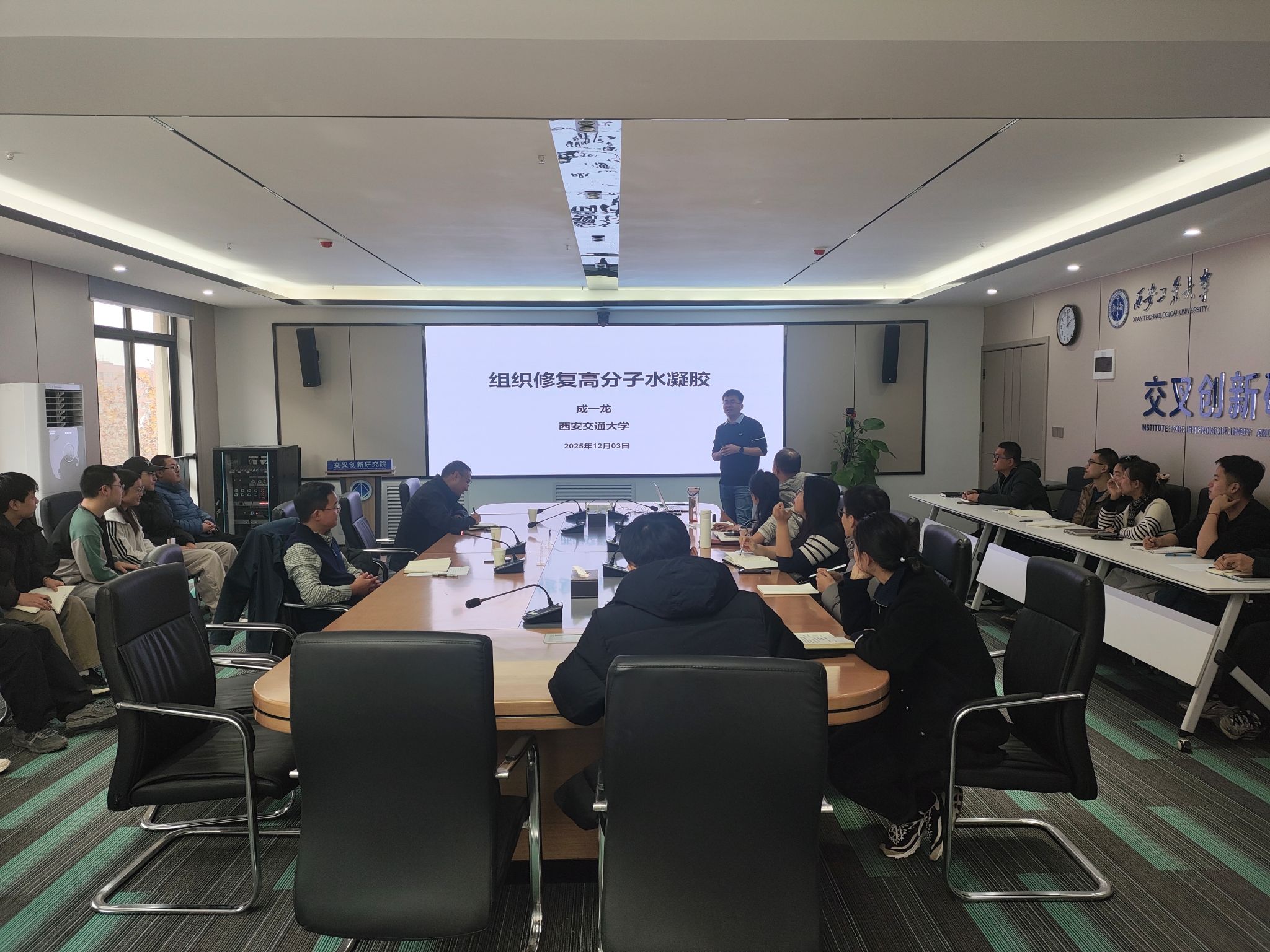 在学术报告环节,成一龙教授以“组织修复高分子水凝胶”为题,聚焦“组织修复高分子水凝胶”的前沿创新,系统介绍了其团队在该领域的创新性工作与成果。学术报告后,成一龙教授为2026年申报国基金的青年教师进行指导,成教授从基金项目名称、摘要、立项依据、研究内容与目标、关键科学问题、研究方案及可行性分析等环节进行重点指导。在互动交流中,与会教师就自己申报过程中遇到的困惑、学科交叉项目申报等问题与成教授进行了交流,成教授结合自身作为项目负责人和基金评审专家的双重经验,为青年教师提供了极具针对性的辅导。